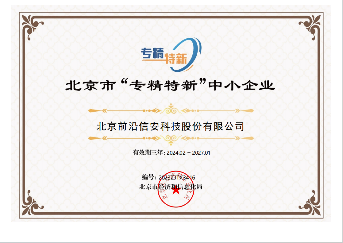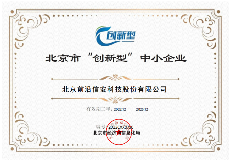 2023年4月,按照工业和信息化部《优质中小企业梯度培育管理暂行办法》(工信部企业〔2022〕63号)、《北京市优质中小企业梯度管理实施细则》要求,B体育亚洲官方网站取得了2023年北京市“创新型”中小企业认定证书。